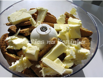 1. Picar as bolachas com a manteiga. Adicionar o leite e picar de novo;