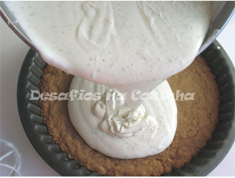 9. Deitar o preparado na forma que tem o fundo de bolacha;
