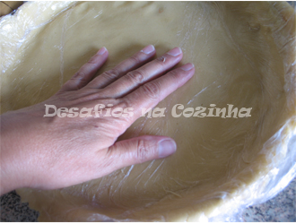 Se a massa for tendida em cima de película aderente, o processo torna-se mais fácil e não é necessário acrescentar farinha em excesso para a massa não pegar;