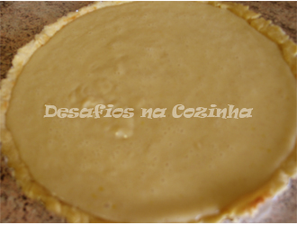 Atenção para a base não cozinhar, apenas solidificar o ovo. Retirar a base da tarte do forno e reservar.