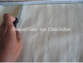 Fazer retângulos de massa. A faca deve ser usada no sentido de cima para baixo e não arrastando;