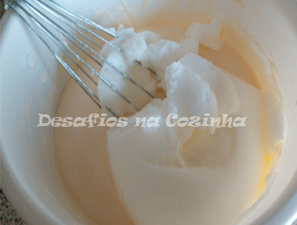 4. Bater as claras em castelo firma e envolver cuidadosamente ao creme. Reservar o creme obtido no frigorífico;