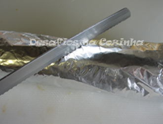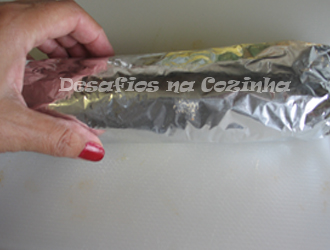 8. Enrolar o wrap com o auxilio do papel de alumínio.